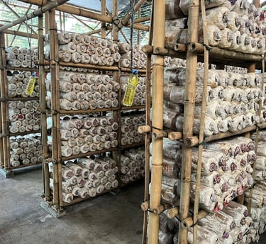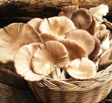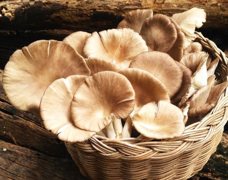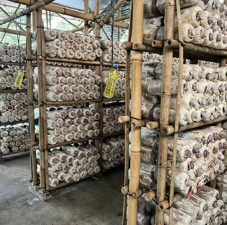 We grow chemical‑free Pleurotus ostreatus on recycled agricultural waste, turning sawdust and rice byproducts into nutrient‑rich substrate.